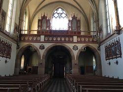 | Spielhilfen, Koppeln: | Koppeln: Manualkoppel, I-Pedal, II-Pedal, Feste Kombinationen: Pleno, Forte, Piano, Handregister; |