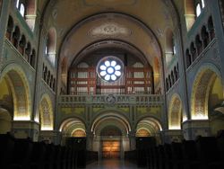 | Geschichte der Orgel: | 1928/30 Bau der Hauptorgel durch Orgelbau Angster mit 5 Manualen und 91 Registern.