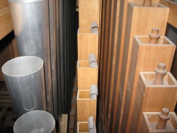 | Geschichte der Orgel: | Nach der Weihe der katolischen Kirche 1963 im traditionell lutherischen Uttenreuth entschied man sich gegen eine preisgünstige Orgel in Leichtbauweise und schaffte eine elektrische Orgel an. Da die Reparaturkosten mit der Zeit unverhältnismäßig hoch wurden, wurde bereits in den 80er Jahren der Bau einer Pfeifenorgel beschlossen. Die Orgel ist am frühen französisch-romantischen Orgelbau orientiert und bildet in der Orgellandschaft quasi einen Übergang von den Barock geprägten Erlanger Orgeln zu den romantischen Orgeln in Dormitz, Neunkirchen und Hetzles östlich von Erlangen. Eine Besonderheit sind die zwei Cymbelsterne mit jeweils vier Glöckchen, die als besonderes "Schmankerl" bei festlichen Anlässen nicht fehlen. |