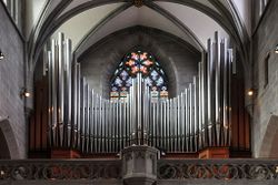 1853 Orgelneubau als Opus 118 von Eberhard Friedrich Walcker II/35. 1882 Orgelneubau durch Johann Nepomuk Kuhn III/42. 1912 erneuter Orgelneubau durch Orgelbau Kuhn III/52. 1953 Orgelneubau durch Orgelbau Genf AG. 1999 Anschluss der Chororgel als Fernwerk durch Orgelbau Stengele. |