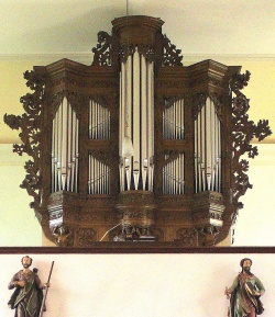 | Gehäuse: | Der Prospekt der Orgel stammt aus dem Jahr 1785 und stand wohl ursprünglich im Kloster Wadgassen. |