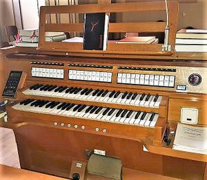 Spielhilfen, Koppeln: II/I, II/I (Sub), II/I (Super), II/II (Sub), II/II (Super), I/P, II/P, 2 freie Kombinationen, Tutti