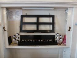 | Spielhilfen, Koppeln: | angehängte Pedalkoppel, Kalkantenruf |