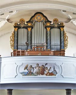 | Spielhilfen, Koppeln: | II/I, II/I (Sub), II/I (Super), I/P, II/P, II/P (Super), Tutti, Automatisches Pianopedal, Registercrescendotritt |