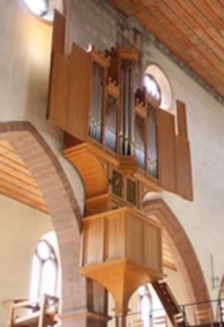 Anmerkungen: Im Stil der Renaissance erbaute Sebastian Blank in Zusammenarbeit mit Bernhardt Edskes 1985 eine zweimanualige Schwalbennestorgel mit elf Registern und einer mitteltönigen Stimmung.