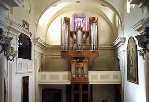 Principale 8' Flauto camino 8' Ottava 4' Nazardo 22/3' Ottavino 2' Ripieno 4f 11/3' Schalmey 8' Zimbelstern |