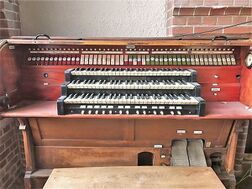 | Spielhilfen, Koppeln: | II/I, III/I, III/II, I/P, II/P, III/P, 4'III/P (1971); 2 freie (urspr. 1) Kombinationen, Tutti, Crescendowalze |