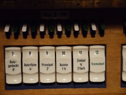 Rohrflöte 4' Prinzipal 2' Quinte 11/3' Zimbel 2f. 1/2' Tremulant |
