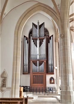 | Spielhilfen, Koppeln: | II/I, III/I, III/II, I/P, II/P, III/P, 2 freie Kombinationen, 1 freie Pedalkombination |