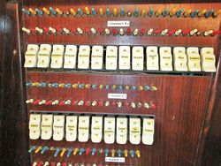 | Umbauten: | 1935 Einbau der am Spieltisch bereits vorbereiteten Chororgel auf dem IV. Manual |