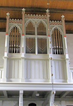| Geschichte der Orgel: | 1859 Orgelneubau einer seitenspieligen mechansichen Schleifladenorgel durch Friedrich Friese III.