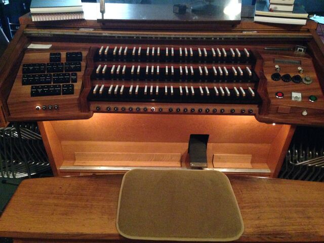 | aktuell | 21:25, 8. Mai 2017 | 3.264 × 2.448 (1,47 MB) | Weidenpfeife 8 (Diskussion | Beiträge) | Beschreibung = Spieltisch der Wilbrand-Orgel in St. Hubertus, Aachen-Kronenberg Autor = NHK Quelle = eigenes Werk |