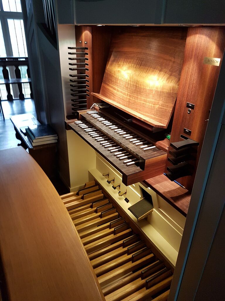 | Beschreibung | Spieltisch der Rensch-Orgel |