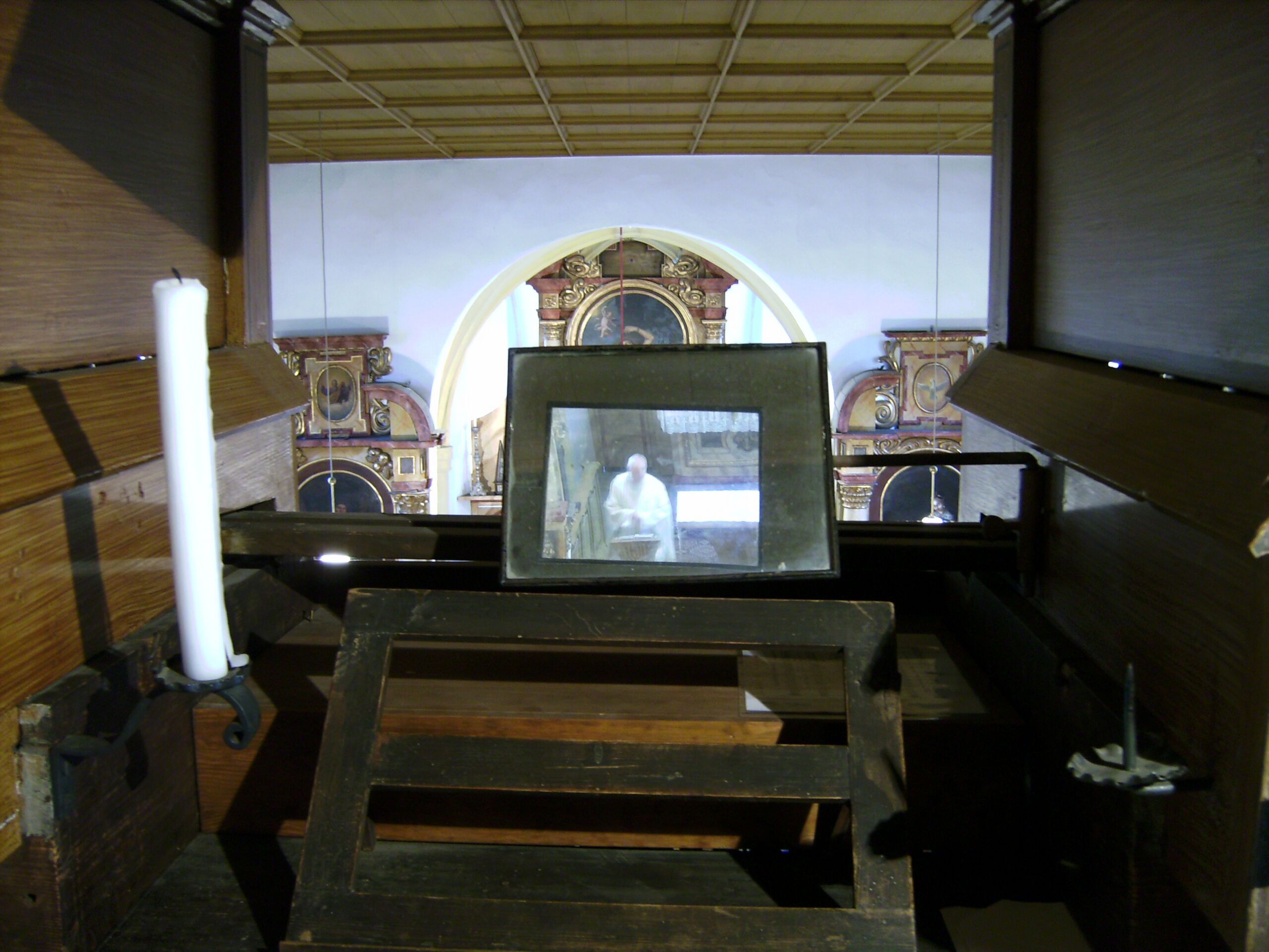 | Beschreibung | Bamberg, Sebastianikapelle, Blick in die Kirche über die Spiegel |