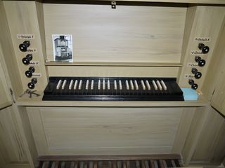 | Beschreibung | Berlin, Bekenntniskirche (Saalorgel) Spieltisch |