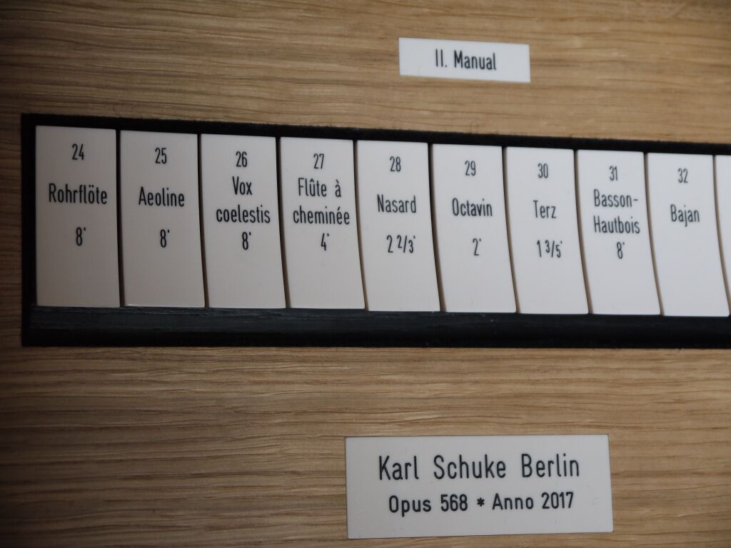 | aktuell | 12:33, 3. Feb. 2018 | 2.048 × 1.536 (919 KB) | Reicwo (Diskussion | Beiträge) | {{Dateiinfo |Beschreibung = Berlin, Kapelle der Versöhnung, Register |Datum = 03.10.2017 |Autor = Wolfgang Reich |Quelle = Eigene Aufnahme |Lizenz = }} Orgelbilder / Registerzüge Orgelbilder / Firmenschilder |
