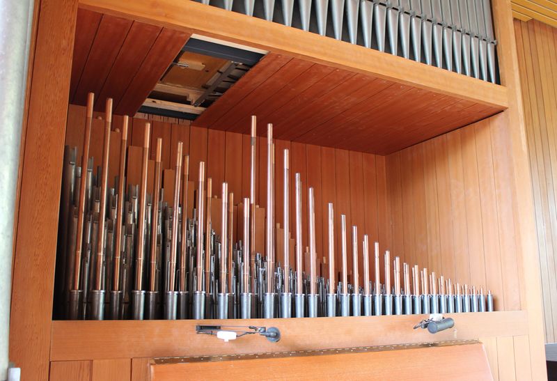 | Beschreibung | Bosch-Orgel im Konzertsaal des Hauses D im Philosophikum II der Justus-Liebig-Universität Gießen, op. 464, Pfeifenwerk des Brustwerks |