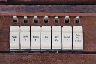 | Beschreibung | Hauptwerksregisterstaffel der Raschke-Orgel der ev. Pankratiuskapelle zu Gießen |