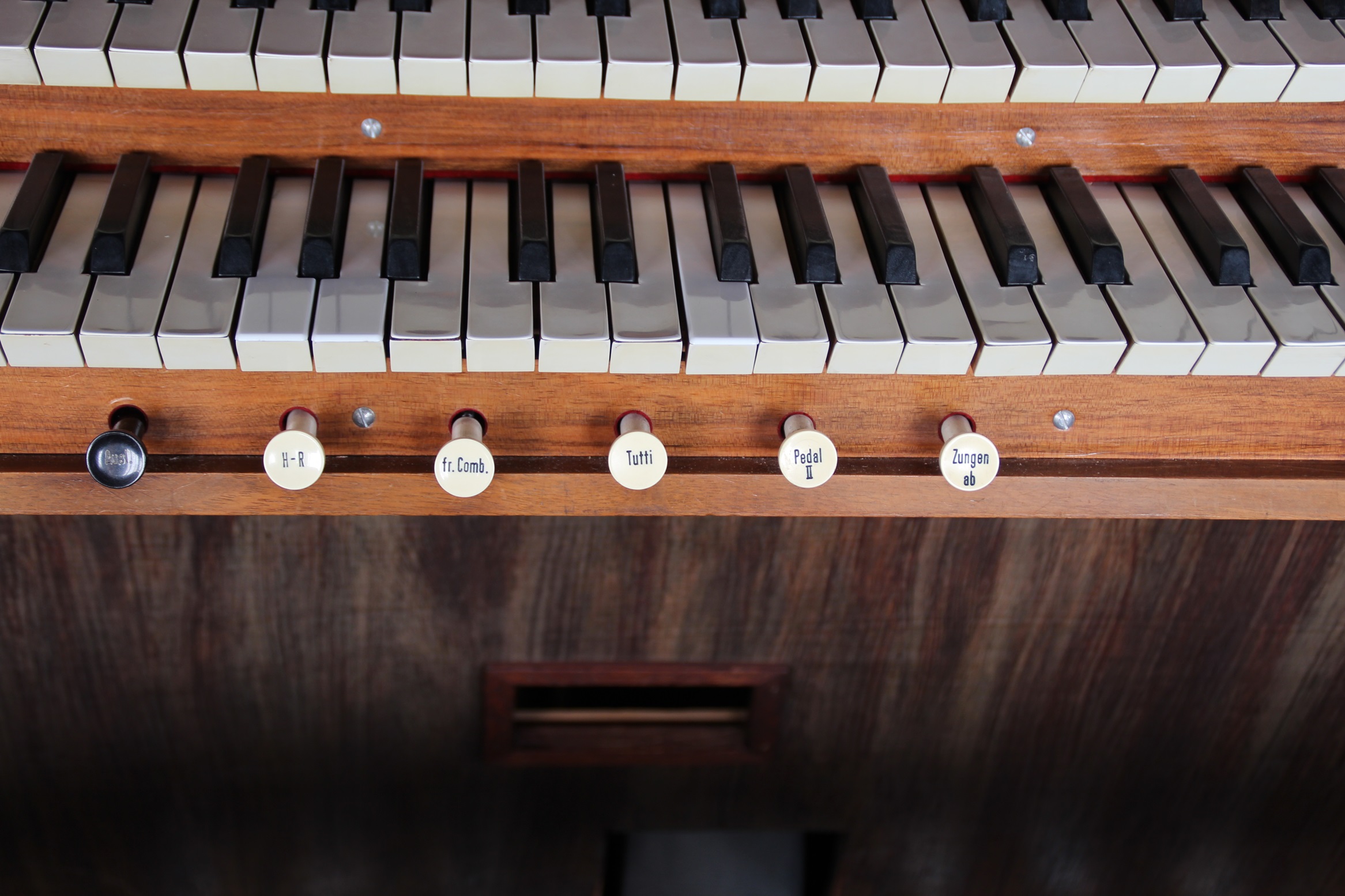 | Beschreibung | Kombinationsknöpfe der Raschke-Orgel der ev. Pankratiuskapelle zu Gießen |