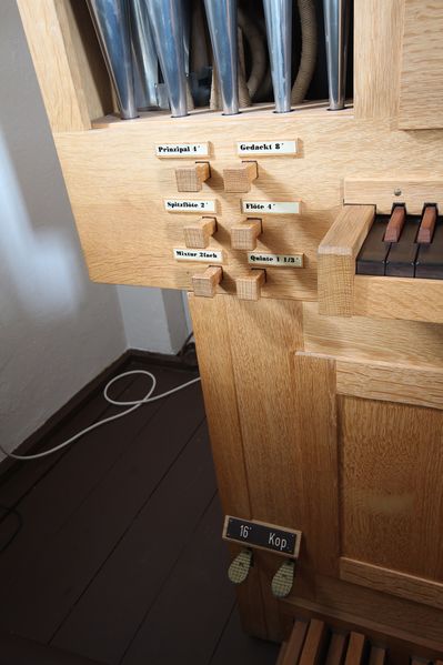 Datei:Grünberg-Reinhardshain, ev Kirche, Orgel, Register.JPG