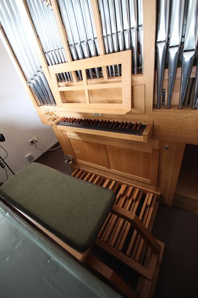 Datei:Grünberg-Reinhardshain, ev Kirche, Orgel, Spieltisch.JPG