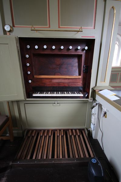 | Beschreibung | Spieltisch der Dickel-Orgel der ev. Dorfkirche zu Grünberg-Weitershain |