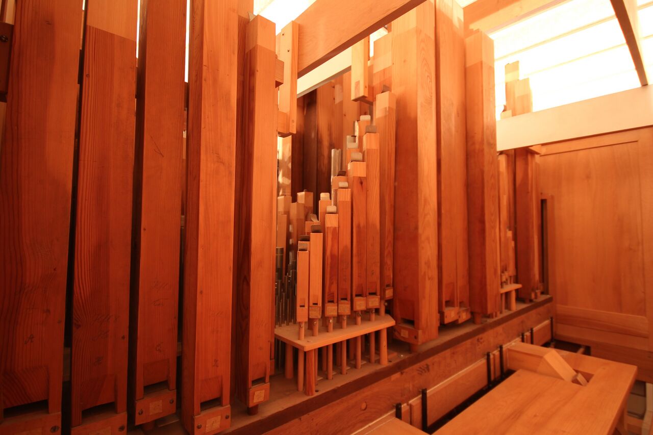 | Beschreibung | Orgelpfeifen (Manualwerk, hinten Holzflöte offen) der Sier-Orgel der Evangelischen Kirche zu Hüttenberg-Vollnkirchen |