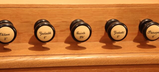 | Beschreibung | Manubrien (rechter Teil) der Sier-Orgel der Evangelischen Kirche zu Hüttenberg-Vollnkirchen |