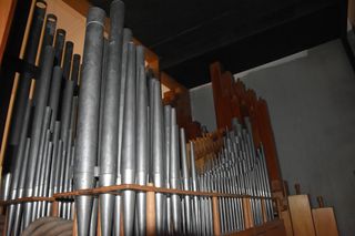 | Beschreibung | Pfeifen auf der Manual-Zwillingslade der Peter Vier Orgel im Städtischen Klinikum Karlsruhe |