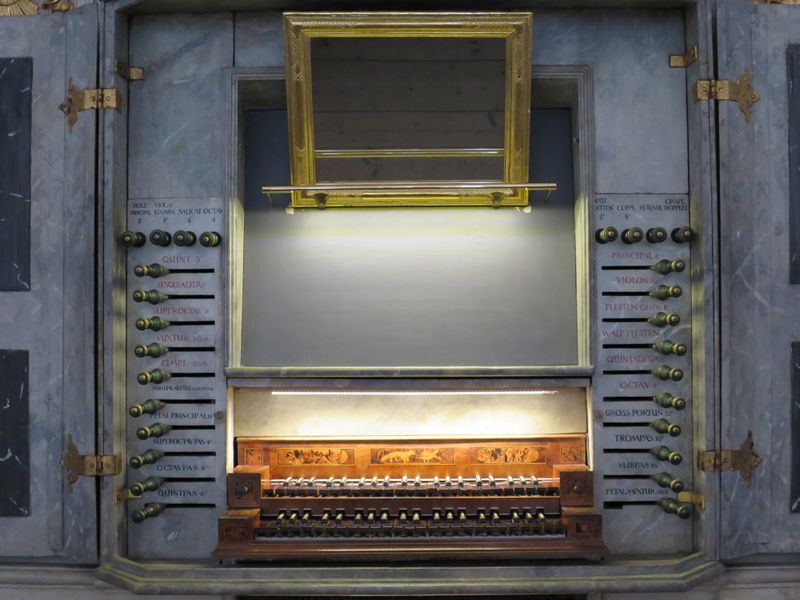Dateiinfo = Orgelbilder Beschreibung = Fürstenfeldbruck, Klosterkirche Fürstenfeld, Spieltisch der Fux-Orgel Datum = August 2015 Autor = Octavin Quelle = eigenes Werk Lizenz =