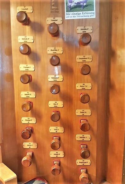 | aktuell | 20:39, 15. Jul. 2019 | 525 × 775 (116 KB) | Cmcmcm1 (Diskussion | Beiträge) | {{Dateiinfo |Beschreibung = Kemper-Orgel der Maria-Magdalenen-Kirche Lauenburg (Elbe) |Datum = 2019-07 |Autor = Lukas Bölinger |Quelle = Eigenes Werk |Lizenz = }} Orgelbilder / Registerzüge |
