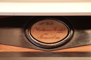 | Beschreibung | Firmenschild am Spieltisch der Hartmann-Orgel der evangelischen Kirche zu Ober-Bessingen |