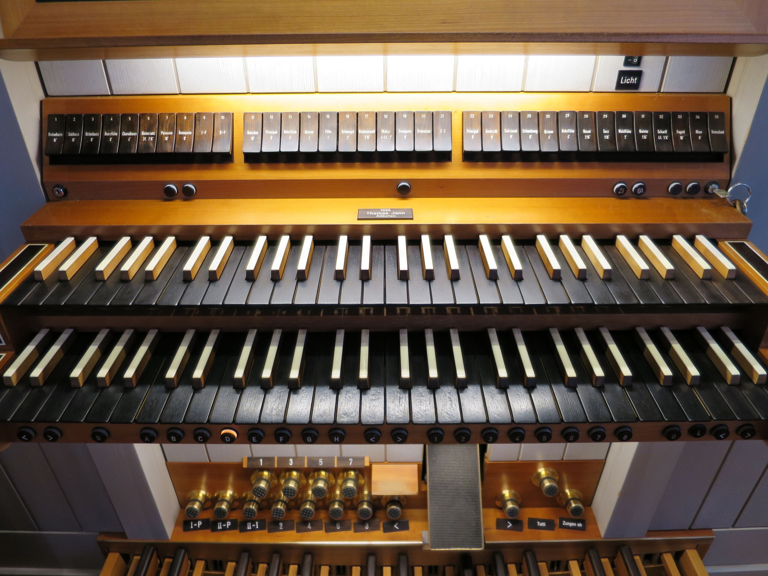 Dateiinfo = Orgelbilder Beschreibung = München/Laim, St. Philippus, Spieltischdetail Datum = August 2017 Autor = Octavin Quelle = eigenes Werk Lizenz =