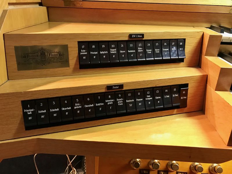 Datei:Münster, Herz Jesu, Orgel Registerschalter links.jpg