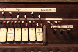 | Beschreibung | Registerstaffeln der Walcker-Orgel im Konzertsaal des Ernst-von-Hülsen-Hauses |