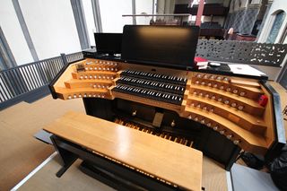Datei:Marburg, Universitätskirche, Orgel, Spieltisch.jpg