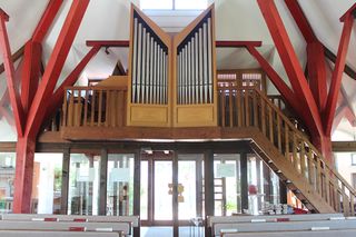 | Beschreibung | Innenraum der evangelischen Kreuzkirche zu Marburg-Bauerbach mit Orgelempore und Tzschöckel-Orgel |