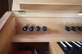 | Beschreibung | Manubrien des Pedals der Tzschöckel-Orgel der evangelischen Kreuzkirche zu Marburg-Bauerbach |