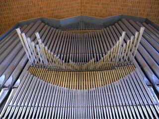 Beschreibung: Die Orgel in der evangelisch-lutherischen St. Matthäuskirche in Nürnberg.