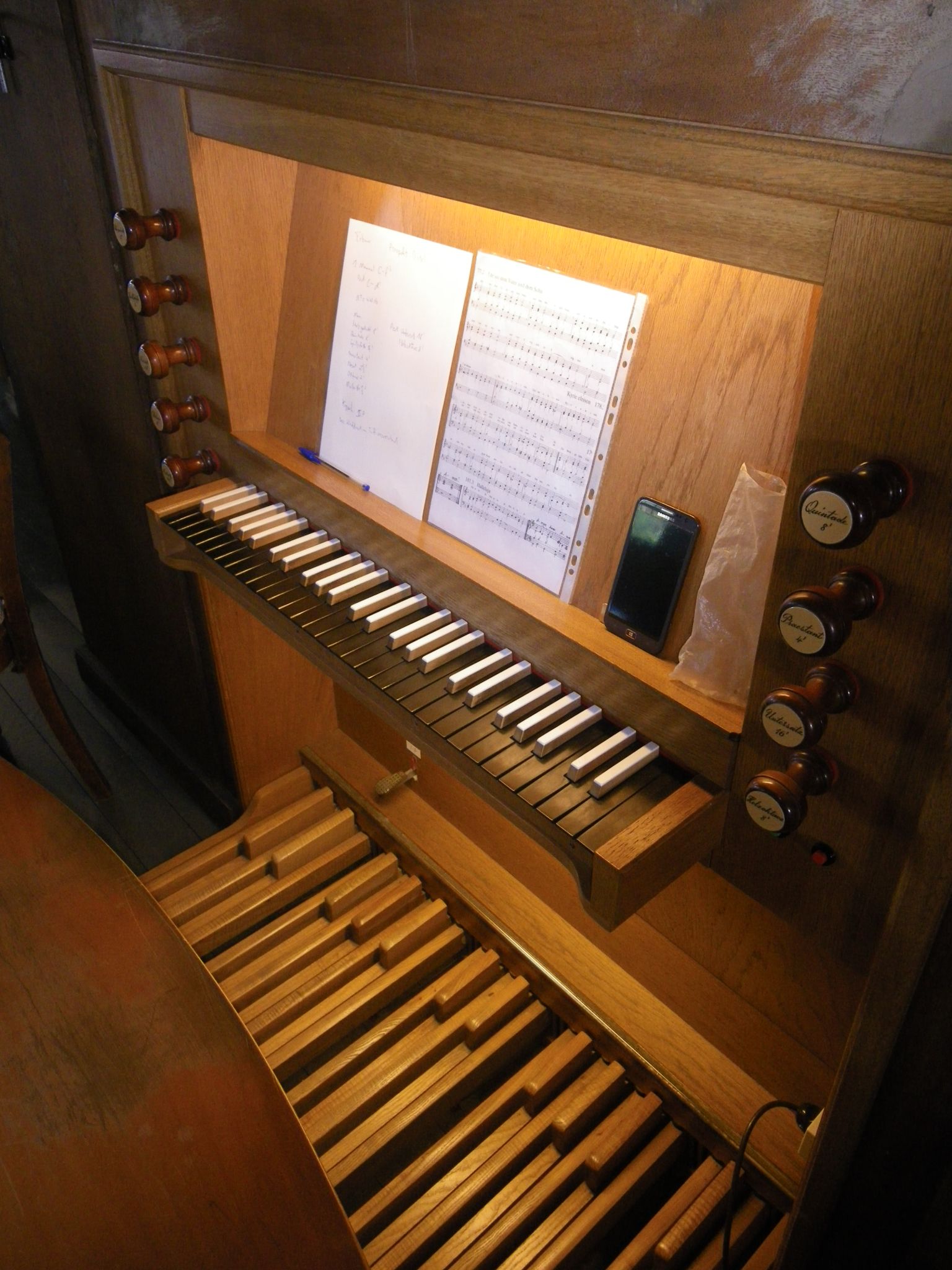 | Beschreibung | Spieltisch der Bosch-Orgel |
