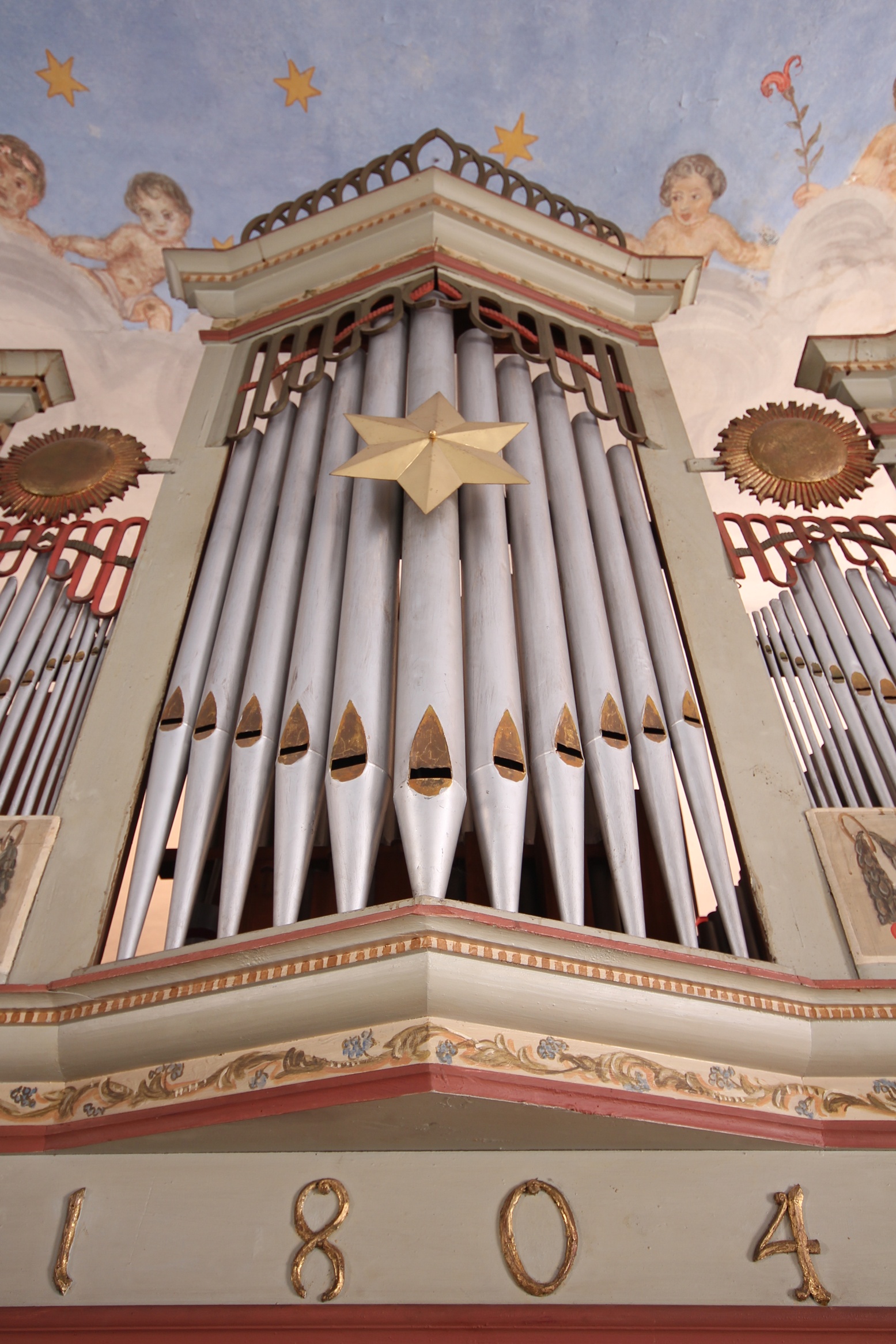 | Beschreibung | Link-Orgel der ev. Kirche zu Rabenau-Rüddingshausen, Gehäuse von einem anonymen Orgelbauer aus dem Jahr 1804 |