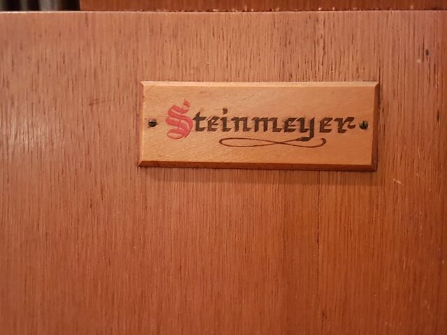 Beschreibung: Steinmeyer-Schildchen auf der Seite der Orgel