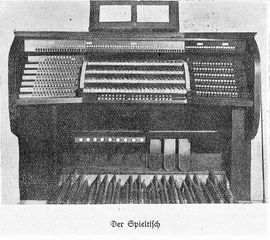 | aktuell | 20:50, 30. Apr. 2019 | 800 × 711 (473 KB) | Cmcmcm1 (Diskussion | Beiträge) | {{Dateiinfo |Beschreibung = Späth-Orgel in St. Michael Saarbrücken |Datum = 1925 |Autor = - unbekannt- |Quelle = Festschrift zur Orgelweihe |Lizenz = }} Orgelbilder / Spieltisch |