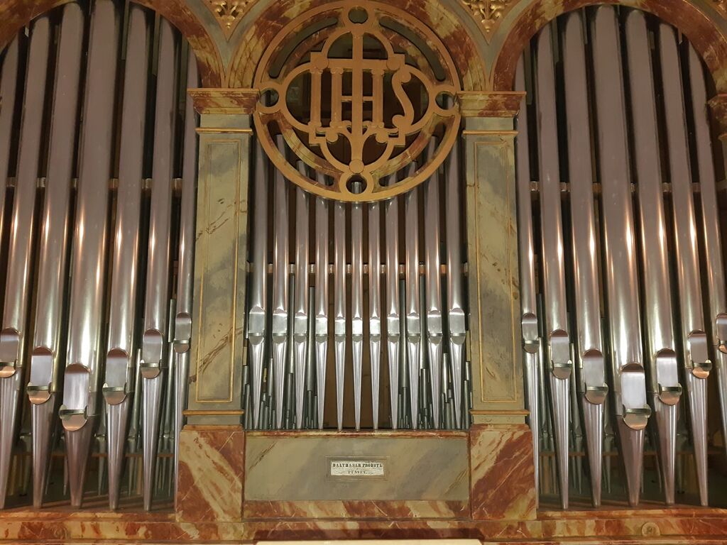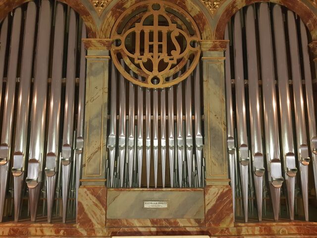 Pröbstl-Orgel in der Pfarrkirche St. Walburga, Schwabbruck - Prospekt Detail Datum 2019 Autor bzw. Rechteinhaber Anna Scholz (mit freundlicher Genehmigung) Quelle Eigenes Werk Lizenz Standard-Lizenz von Organ index siehe Organ index:Urheberrechte