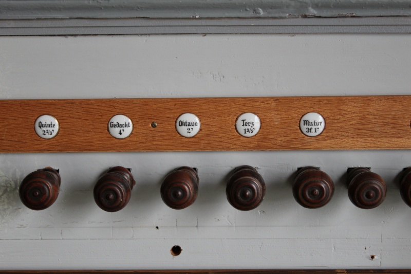 | Beschreibung | Orgel der Dorfkirche Sichertshausen, Manubrien links |