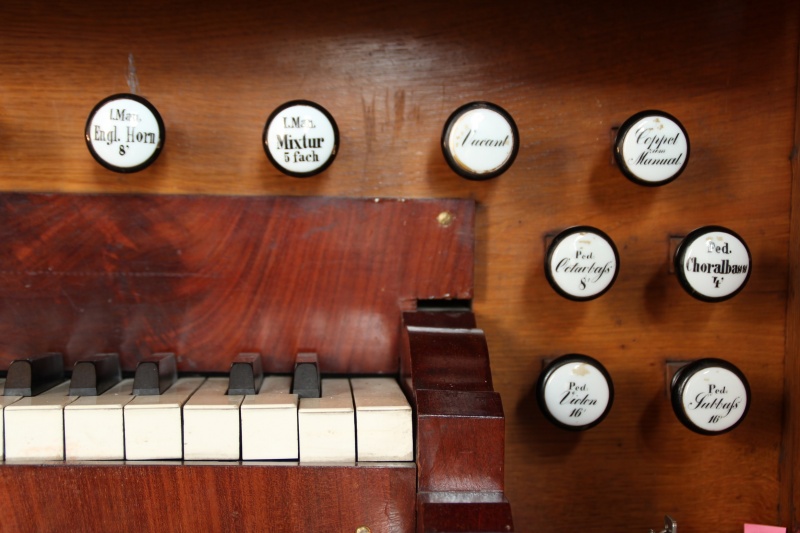 Beschreibung Manubrien (rechte Seite) der Schlimbach-Orgel der evangelischen Pfarrkirche zu Staudernheim