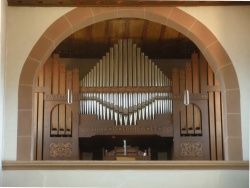 | Spielhilfen, Koppeln: | I/P, II/P, I/II, 4 feste Kombinationen (p, mf, f, ff), Pedaloktavkoppel, früher: Automatisches Pianopedal im II. Manual, Calcant (vor Einbau des motorisierten Blasebalgs) |