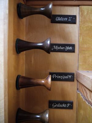 Gedackt 8' Prinzipal 4' Oktave 2' Mixtur 3f. |