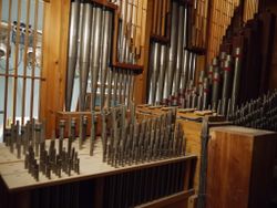 Geschichte der Orgel: Das Instrument stammt aus dem Sendesaal des Landessenders Dresden und wurde in die Emmauskirche umgesetzt und 1993 eingeweiht.