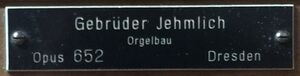 | Orgelbauer: | Gebrüder Jehmlich (Otto und Rudolf), op.652 |